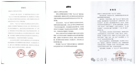 安徽电气工程职业技术学院电力工程系“电力之光”服务队在系党总支领导和团总支的指导下,秉持“服务同学、服务学院、服务社会”的宗旨,依托电力专业学科优势,构建专业化、常态化志愿服务体系,一年来先后获得地方政府、团委多封表扬感谢信,成为学院凝聚青年力量、践行社会责任的重要载体。