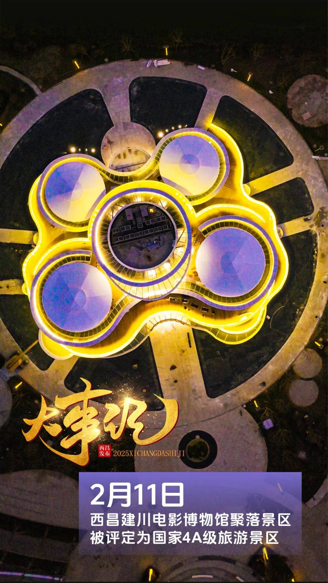 2月11日,四川省文化和旅游厅发布消息,依据《旅游景区质量等级的划分与评定》国家标准,由各市(州)推荐,经四川省旅游资源规划开发质量评定委员会按程序组织综合评定,凉山州西昌市建川电影博物馆聚落景区被评定为国家4A级旅游景区。