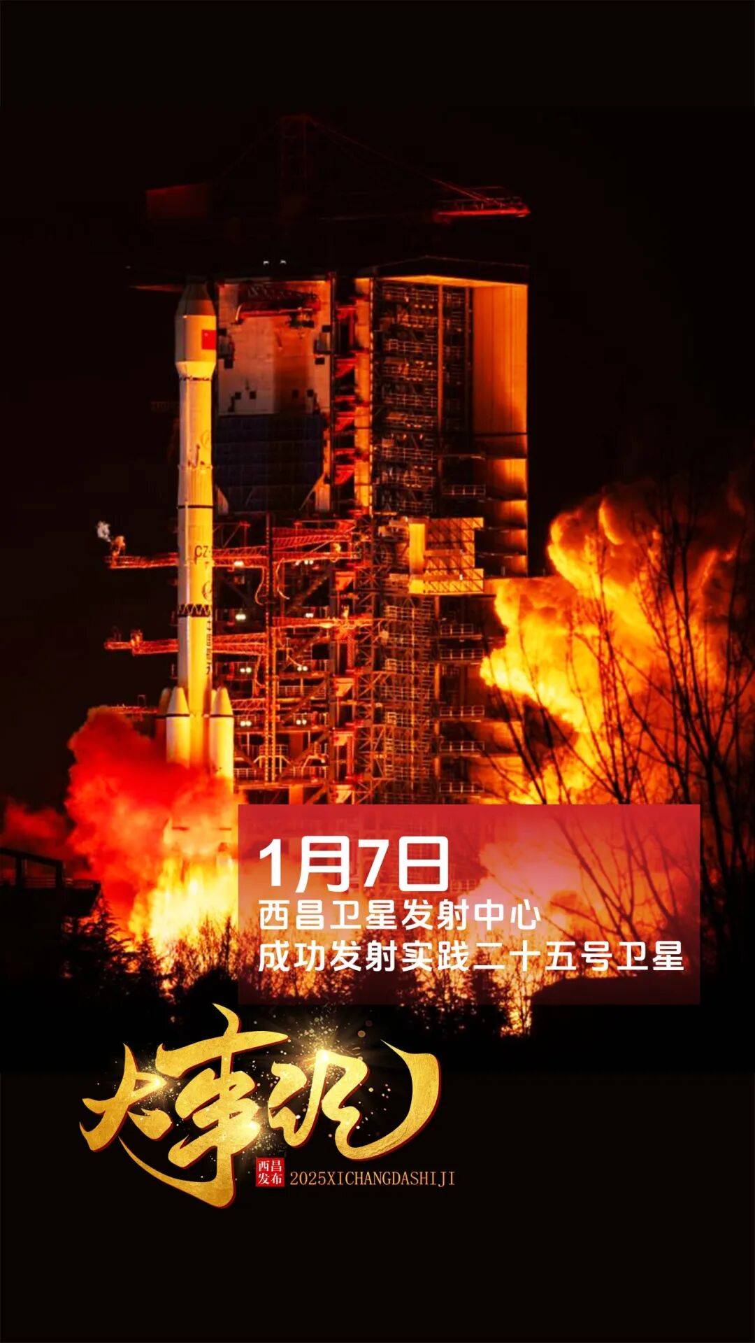 北京时间2025年1月7日04时00分,我国在西昌卫星发射中心使用长征三号乙运载火箭,成功将实践二十五号卫星发射升空,卫星顺利进入预定轨道,发射任务获得圆满成功。该卫星主要用于卫星燃料补加与延寿服务技术验证。