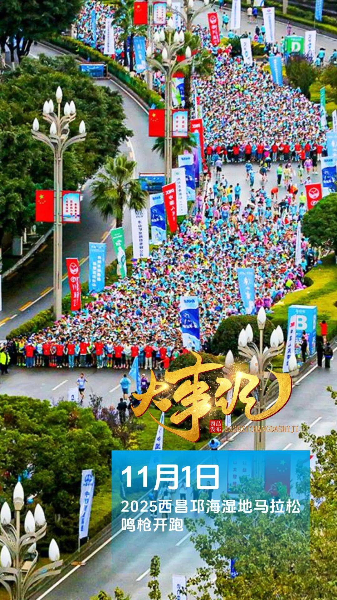 11月1日上午8时,世界田联金标赛事——四川银行2025西昌邛海湿地马拉松暨“跑遍四川”(凉山·西昌站)在火把广场鸣枪开跑。2024年,西昌邛海湿地马拉松已在全球马拉松排名中位列第84位,国内排名第21位,成功晋升为世界田联金标赛事,成为国内首个获此殊荣的县级全马赛事。2025年,本届赛事设马拉松和半程马拉松两大组别,总规模达18000人,同类型项目较2024年增加3000人。