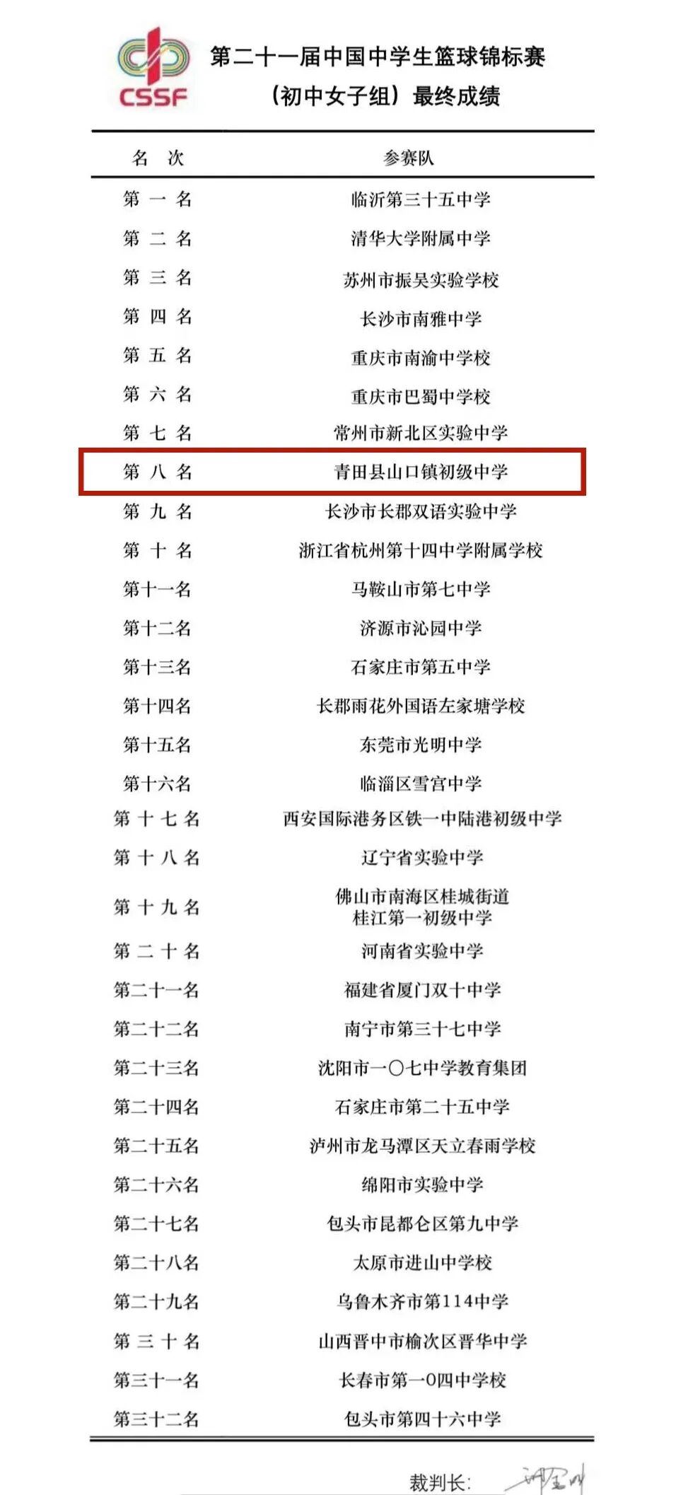 在城市名校云集的赛场上,来自青田县山口镇初级中学的女子篮球队,作为本届赛事中唯一晋级前八的乡镇学校队伍,以令人瞩目的“黑马”姿态连克劲旅,最终斩获全国第八名,创造了该校在此项赛事中的历史最佳成绩。