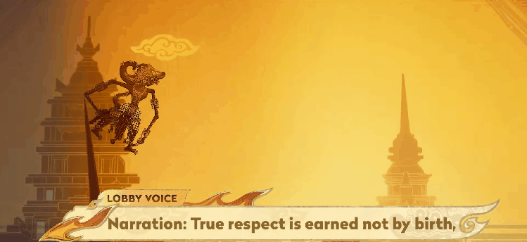 除此之外,皮肤的大厅动画还原了哈努曼火烧楞伽宫的经典史诗桥段,出场时的印尼语配音采用皮影戏念白语调,进一步强化了文化沉浸感。
