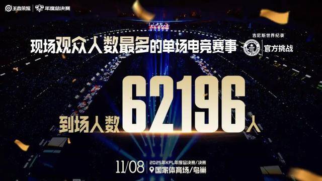 在国内,王者电竞早就走到了成熟阶段:KPL体系完整,城市主场稳稳扎根,粉丝文化也已经成型,甚至形成了自己的“电竞产业闭环”。2025年11月8日,第二届王者荣耀KPL年度总决赛在国家体育场“鸟巢”举办,62196名观众到场观赛,直接打破吉尼斯世界纪录,成为现场观众最多的单场电竞赛事。